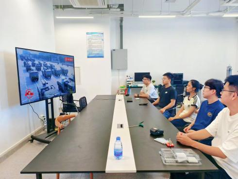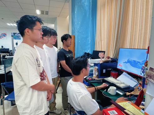 与此同时,张旺老师团队和李志松老师团队的学生分别在实验室集体观看。正在实验室观看阅兵的张旺老师团队成员表示:"在科研一线观看阅兵,更能体会到科技强国的重要性。我们要把科研做在祖国大地上,为强国建设贡献青春力量。"